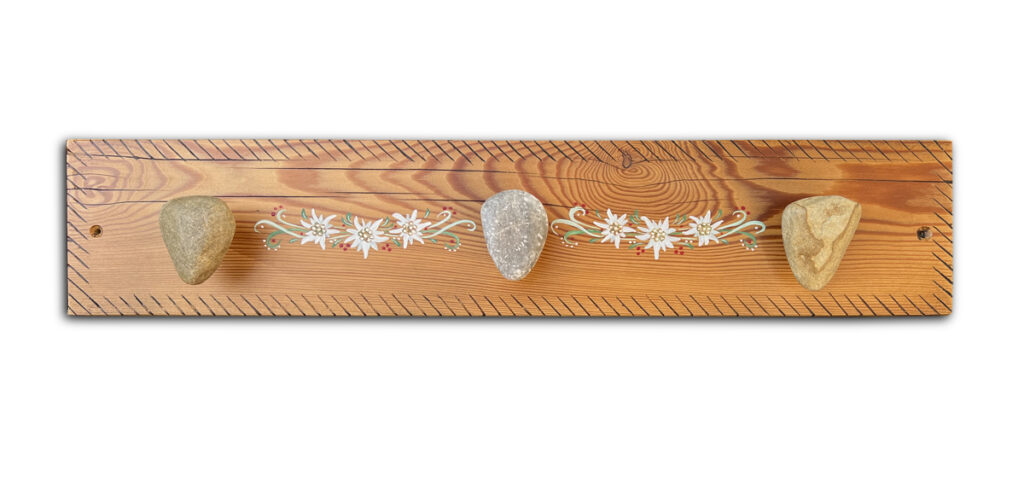 ![]() | P3. Patère "Galets de la Guisane" acrylique sur mélèze dimensions hors tout : 670 x 130 mm prix : 80 euros |